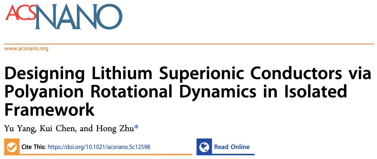 大规模电化学储能创新团队最新研究成果“Designing Lithium Superionic Conductors via Polyanion Rotational Dynamics in Isolated Frameworks”第一完成单位是av直播